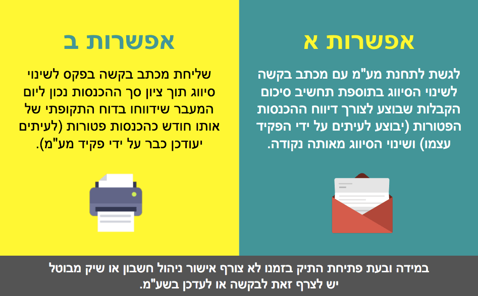 חשוב לציין: מאותו רגע עד שינוי הסיווג יש להנחות את הלקוח לא לבצע עסקאות ולא להוציא קבלות עד אישור שינוי הסיווג לעוסק מורשה.